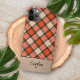 Beige bronzeado contemporâneo, castanho esticado, preto, e xadrez de tartã cor de laranja de abóbora de outono, e um fundo de textura falsa de couro. Com espaço para personalizar ou personalizar com um nome monograma ou inicial de sua escolha. Belo, moderno e legal cobrir para o motif motif motif motif motif motif motif, experiente e amante da arte, que quer proteger seu telefone de poeira e sujeira, visto e lágrimas. Este design está disponível no Apple iPhone 6, 7 e 8 Plus, 10 ou X, XR, XS, 11, 12, 13, 14 Mini, 15 Plus e Pro Max Celphone capas. Mostre o seu estilo pessoal, pareça elegante e moderno, e sinta-se na moda com um design único em um acessório de dispositivo móvel de sua escolha.