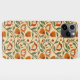 Seamless floral pattern featuring orange and red flowers with green leaves on a beige background. The design is vibrant and decorative.