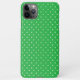Seamless repeating pattern of small white polka dots uniformly scattered across a vibrant green background.