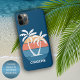 Imagem contemporânea e clássica do pôr do sol azul-lacrimogêneo, de cor laranja escura e clara, numa praia tropical e exótica da ilha havaiana com palmeiras brancas. Com a opção de personalizar ou personalizar com um nome, monograma ou iniciais de sua escolha. Um design decorativo bonito, moderno e bonito para o amante do Havaí ou do Caribe, praias, oceano, mar, beleza dos trópicos e destinos populares de férias de verão. Belo, moderno e legal cobrir para o motif motif motif motif motif motif motif, experiente e amante da arte, que quer proteger seu telefone de poeira e sujeira, visto e lágrimas. Este design está disponível para o iPhone 6, 7 e 8 Plus, 10 ou X, XR, XS, 11, 12, 13 Mini, 14, 15 Plus e capas Pro Max de celulares. Mostre seu estilo, olhe a moda da moda e sinta na moda com um design único em um acessório de dispositivo móvel de sua escolha.