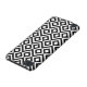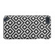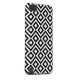 Este teste padrão geométrico preto e branco à moda é um design decorativo original. O branco meanders ângulo em torno dos carvões que contêm os diamantes brancos. Os ziguezagues pretos fornecem a separação subtil entre os trajetos do enrolamento.