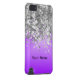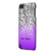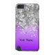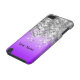 Personalize facilmente estes bling metálico da faísca do brilho da prata feminino elegante chique do falso e fundo roxo do olhar do cetim com suas iniciais feitas sob encomenda do texto, do nome ou do monograma para fazer um presente personalizado sofisticado original. O clique personaliza para ajustar o texto/o tamanho ou estilo de pia batismal. NOTE POR FAVOR a prata não é metálico, sparkly, brilhante ou glittery.