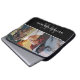 Laptop com um ousado monograma moderno e sobrenome de iniciais e modelo de nome personalizado minimalista branco em fundo preto. Adicione suas três fotos favoritas para criar sua própria bolsa de laptop de colagem de fotos. Um na moda e pensativo presente personalizado de aniversário, dia de as mães, graduação ou aposentadoria.