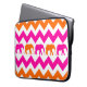 Os elefantes alaranjados corajosos Chevron do rosa quente listram a bolsa de laptop com zipper. Características deste design na moda rosa quente corajoso e ziguezagues listrados alaranjados da viga com uma fileira de elefantes de passeio no meio, também em fúcsia e em alaranjado.
