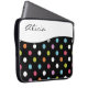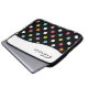 A bolsa de laptop do monograma das bolinhas com o emblema que colorido do teste padrão e do monograma de bolinhas você pode personalizar com todo o nome, as iniciais, ou a mensagem. Este design protege seus eletrônicos portáteis tais como sua netbook, laptop, ou tabuleta no estilo e faz-lhe seus próprios.