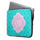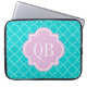 Monograma marroquino personalizado 15' da estrutura do azul e do branco de turquesa a bolsa de laptop. Design moderno com treliça do quatrefoil. Monograma cor-de-rosa e branco da cor com iniciais extravagantes. Escola monogrammed chique e materiais de escritório. Ideia bonito do presente para mulheres e meninas femininos.