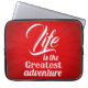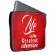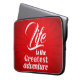 Uma citação de caligrafia positiva definida contra um fundo de gradiente radial vermelho. A vida é a maior aventura é uma excelente ideia de presente para qualquer um que tenha uma atitude otimista.