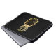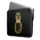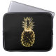 Um contorno de ouro rabiscado de um abacaxi brilha contra um fundo preto.