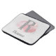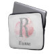 O design inicial/monograma bonito apresenta a letra R cintilante prateada com fundo cor d-d-água rosa abstrato e texto personalizável para adicionar nome ou outra mensagem. Fundo de cinza leve com cinza