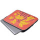 Abstrato flores bolsas de laptop com uma ilustração do vetor geométrico de bonito plantas amarelas vibrantes florescentes com caules azuis escuros sobre fundo rosa coral. Esta arte floral decorativa traz primavera e humor de verão.