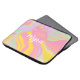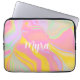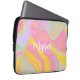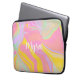Apresenta uma pintura de abstrato que apresenta cores rosa, amarela, verde e azul