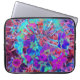 Esta Bolsa de laptop Floral Colorida apresenta Flores Abstrato púrpura e azuis do Jardim Sangrento com Acentos Rosa Quente, Magenta, Chartreuse, Marrom, Aqua, Azul e Rosa. O resultado é uma pintura legal e colorida do jardim de flores que você vai amar!