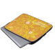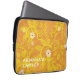 Esta manga de computador é adornada com flores e folhas amarelas mais flores brancas retrorreflectoras sobre um fundo laranja. Preencha o campo modelo com suas informações, remova todo o texto ou clique no laranja personalizar para selecionar um estilo de fonte, tamanho e cor que você preferir. Faça dele um presente personalizado excelente.