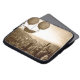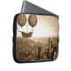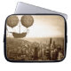 Um dirigível de balão duplo a Steampunk passa sobre o coração de Chicago. Sépia em tons