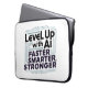 Design de slogan futurista e negrito lendo "Level Up with AI - Faster, Smarter, Stronger" em tipografia no estilo de circuito high-tech. Perfeito para profissionais de IA, estudantes de tecnologia, fãs de aprendizado de máquina e inovadores. Excelente para t-shirts, canecas, posters ou decoração tecnológica motivacional.