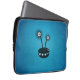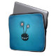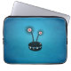 A bolsa de laptop engraçada com uma alienígena louca dos desenhos animados que tenha os olhos vermelhos com halo de intervalo mínimo no fundo textured azul. Este monstro estrangeiro reticulação-eyed louco está sorrindo feliz mostrando seus dentes rachados, ele vem a nosso mundo com um bom humor alegre.