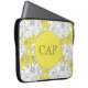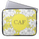 Monograma desta bolsa de laptop floral amarela e cinza com suas iniciais para personalizá-la.