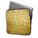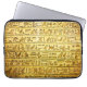 Uma Bolsa de laptop com hieróglifos antigos gravados em pedra em amarelo.