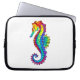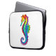 Articulação artificial, brilhante, arco-íris, cavalo de mar poligonal sobre fundo branco. Tatuagem brilhante.