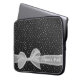 Fita e arco brancas translúcidas em padrão de bolinhas branca e fundo preto. O nome é editável ou pode ser excluído.
