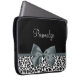 Personalize acrescentando o nome de qualquer menina feminina a essa sofisticada bolsa de laptop neoprene 15'', preta e branca, com uma fita elegante amarrada a um arco feminino clássico. Este design de impressão na moda é uma imagem impressa plana e não contém fita real.