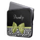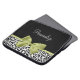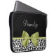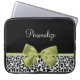Personalize acrescentando o nome de qualquer menina girada a essa bonito bolsa de laptop neoprene 15'', preta e branca, com uma fita verde-primavera bonita amarrada em um arco elegante. Este design de impressão chic e na moda é uma imagem impressa plana e não contém fita real.