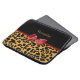 Um laptop na moda 13" do teste padrão do impressão do leopardo do preto e do ouro luva com um arco vermelho bonito da fita envolvido como um presente. Personalize adicionando seu nome. Aperfeiçoe o presente para o chique e a mulher elegante!