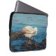 Uma fotografia de uma jovem gaivota parada nas águas rasas do oceano com suas asas seguradas em fazer forma de coração. Os movimentos suaves da água de fundo trazem as diferentes tonalidades das cores da água. Os destroços do mar se enquadram no quadro em primeiro plano, a ave, como está, ainda assim à espera de atacar a presa no momento certo. Imagem Copyright ©Kimberly J Tilley.