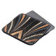 This abstract Art Deco design exudes luxury and sophistication with its sweeping metallic arcs in gold, copper, and grey against a deep black background. Symmetrical curves converge towards a central focal point, framed by sharp angular lines and vertical patterns, evoking glamour and retro elegance. Perfect for elevating home decor, office art, and stylish accessories with a timeless, opulent aesthetic.
