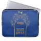 Proteja seu laptop com estilo com nossas árvores Douradas monogramadas com pássaros na bolsa de laptop azul. Esta manga elegante e sofisticada apresenta um design chic de árvores de ouro e pássaros contra um fundo preto elegante, personalizado com seu monograma para um toque único.