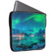 Capa Para Notebook Aurora borealis sobre a costa marítima, montanha d