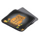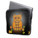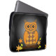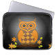Coruja de laranja bonita no outono com olhos grandes e folhas amarelas salpicadas em um galho.