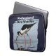 Proteja a sua tecnologia com esta bolsa de laptop com uma fotografia de um pássaro percorante preto e branco. A água azul clara exibe ondulações circulares enquanto o pássaro costeiro mergulha seu bico longo na água. A cor de fundo apresenta um marinho azul que pode ser personalizado para corresponder ao seu desejo. O "Professional Bird Watcher" pode ser facilmente personalizado, se desejado.