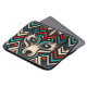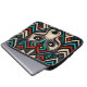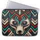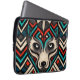 Este é um rosto de lobo decorativo feito à mão e estilizado com padrões astecas em cores preta, vermelha, turquesa e bege.