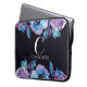 Azul escuro monograma com Bolsa de laptop de Neoprene Flores Roxas e Azuis e personalizado! Personalize com seu próprio nome e nome inicial para um design verdadeiramente exclusivo.