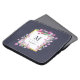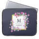 Esta adorável design apresenta aquarela com flores cor-de-rosa de bougainvillea, com uma falso estrutura de ouro e seu monograma, num rico fundo azul-da-noite.
