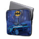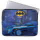 Este gráfico captura vividamente a velocidade do Batman através das ruas iluminadas por neon de Gotham City, no seu icônico Batmobile. Acima dele, o Bat-Signal brilha intensamente contra um céu azul profundo, chamando-o de oficial. O trabalho de arte usa uma paleta de cores impressionante de blues e realces amarelos vibrantes, enfatizando a energia de alta velocidade e a estética futurista do Batmobile. A paisagem urbana de Gotham se transforma em formas ousadas, exageradas, dando à cena um sentimento dinâmico e ligeiramente surreal. Esta ilustração não só celebra o papel de Batman como guardião de Gotham, como também sua dependência da tecnologia e da astúcia em manter a ordem em uma cidade que nunca dorme. A imagem é uma representação emocionante de Batman em ação, misturando perfeitamente elementos de perigo, heroísmo e aventura.