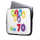 Fazer 70? Vocês vão amar o nosso Beijo-me. Sou 70 aniversariantes em camisas, canecas, cartões, adesivos, ímanes, chaveiros e outros equipamentos de 70 anos com um balão e design de texto brilhantes multicoloridos.