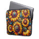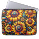 Bonito caçador de girassol de galinheiro. Arte aérea Hyper-realística mostrando girassóis amarelos e azuis em abstrato.