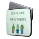 Frase de cacto em tipografia agradável com três desenhos de cacto em fundo verde-claro/azul