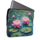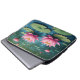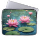 Uma bolsa de laptop projetada criativamente com a natureza das flores de lótus no meio de uma lagoa.