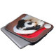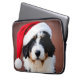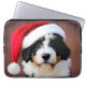 Bela Bernedoodle vestindo um chapéu de Papai Noel.