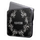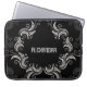 O estilo barroco branco rola em fundo preto. Este é para um laptop de 18 polegadas. Disponível em outros produtos e que pode ser solicitado para qualquer um dos produtos oferecidos no Zazzle