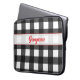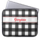 Refresh your tech style with this black and white buffalo plaid laptop cover. Personalized with your name in retro red typography, the patterned case blends classic rustic charm with a bold mid-century touch.