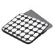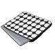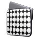 Bolinhas brancas e escuras sobre fundo preto formam um padrão geométrico distinto. Imagem criada digitalmente. Copyright © 2013 Claire E. Skinner. Todos os direitos reservados.