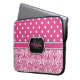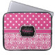 Capa Para Notebook Bolinhas de Damask Monograma, Rosa Quente