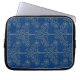 Uma manga elegante para proteger seu laptop, com um padrão floral com efeito ouro sobre fundo azul profundo, de um design digital de Judy Adamson.