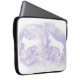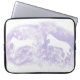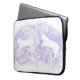 Esta bolsa de laptop foi projetada com a minha representação de dois cavalos brancos saltando em frente a um fundo lavanda, e está pronta para abrigar seu computador.