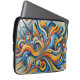 Proteja seu laptop com estilo com esta bolsa de laptop vibrante. Apresentando um design de espiral ousado e colorido em tons de azul, laranja e amarelo, esta manga combina a arte moderna com funcionalidade. Sua construção durável garante que seu dispositivo permaneça seguro, enquanto o design criativo o torna uma obra de declaração para o trabalho, a escola ou a viagem.