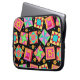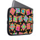 Arte original em forma de colcha combina blocos de colcha favoritos e blocos únicos para formar uma colcha com cores vibrantes e dinâmicas sobre fundo preto. Esta bolsa de laptop é uma forma excelente de mostrar o seu amor por colchar. Totalmente personalizável.